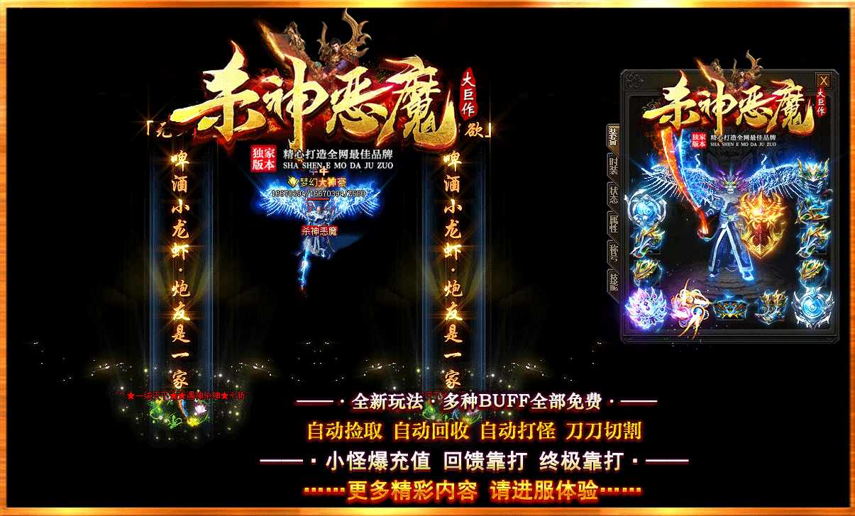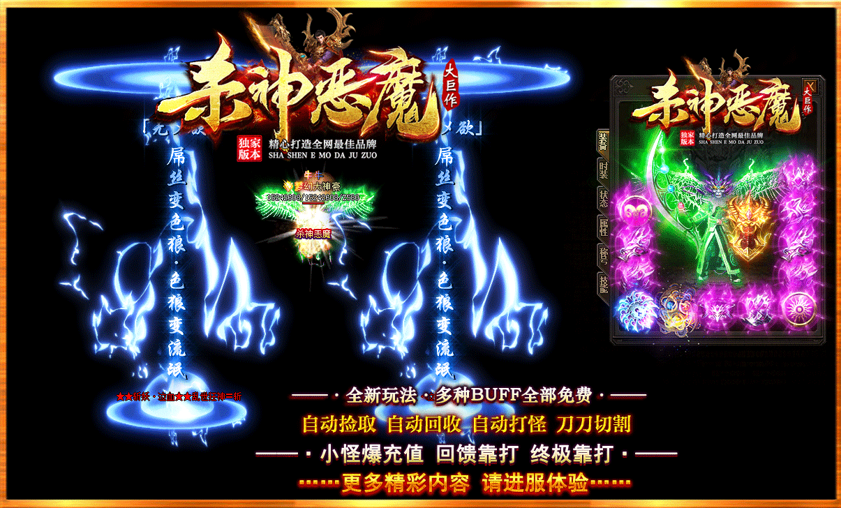 独家韩版杀神恶魔传奇、最新版本、全新制作√品牌大服√散人天堂√长久稳定√实力打造专业传奇!世界BOSS,上古秘境,应有尽有、不走平常路线、摇!满屏广告、还有谁?