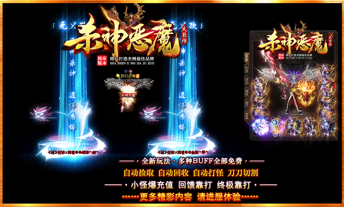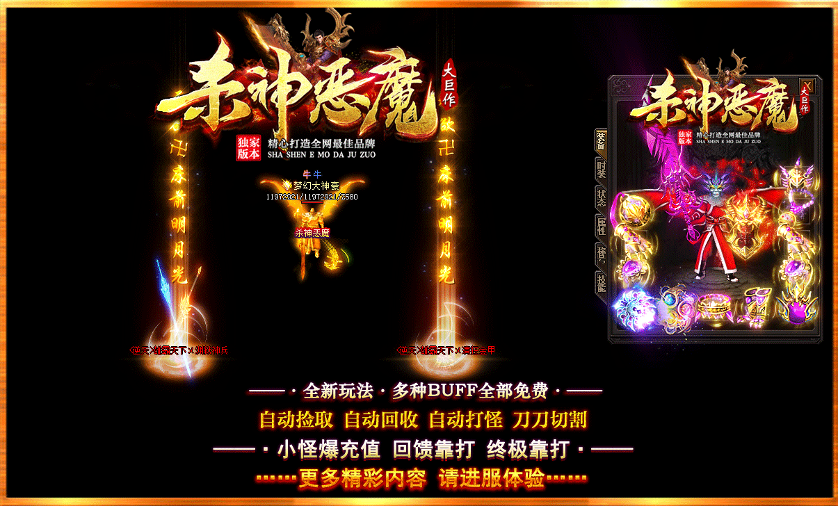 杀神恶魔最新版本,更新N套套装,N套武器衣服,转生等级,地图等等一系列。